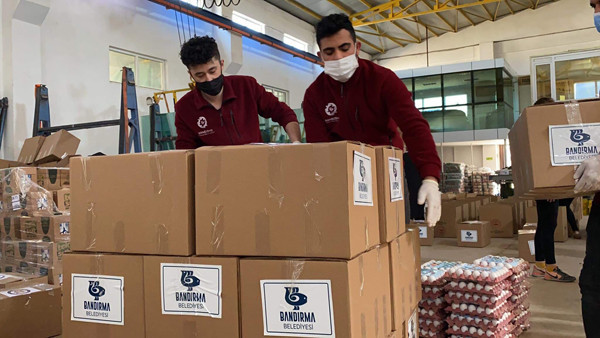 RAMAZAN KOLİLERİ HAZIRLANIP DAĞITILIYOR   Bandırma Belediyesi Kutsal Ramazan Ayında da ihtiyaç sahibi vatandaşlarımızın yanında olmayı sürdürüyor. Bu kutsal ayda gerçek ihtiyaç sahibi olan vatandaşlarımıza ulaşarak onlara bir nebze destek olmak amacıyla belediye ekiplerince hazırlanan erzak gıda kolileri yine belediye ekiplerince gerçek ihtiyaç sahibi olan vatandaşlarımıza dağıtılıyor.   Ramazan’da ihtiyaç sahibi ailelere ulaştırılmak için titiz bir şekilde hazırlanan Ramazan Kolilerini yerinde inceleyen Belediye Başkanı Av. Tolga Tosun, Kutsal Ramazan ayında ihtiyaç sahibi olan vatandaşlarımıza destek olmak amacıyla bu yılda gıda yardım kolilerini hazırlayarak dağıtımlarını gerçekleştirdiklerini söyledi.   Başkan Tolga Tosun: “Tüm dünyada ve ülkemizde salgının olumsuz etkileri ekonomik alanda da kendisini gösterirken Belediyemiz, Kaymakamlığımız, Kızılayımız, Bandırma Ticaret Odamız, Bandırma Ticaret Borsamız, Yardım Vakıflarımızın ve birçok hayırsever iş adamımızın katkılarıyla oluşturulan Ramazan erzak kolilerimiz bu zor süreçte ihtiyaç sahibi olan ailelerimize destek sağlamak için hazırlanıp dağıtılıyor. Özenle ve hijyen kurallarına uygun bir şekilde hazırlanan yardım kolilerinin her birinde gıdadan temizlik maddesine kadar pek çok faklı ürün yer alırken kentimizde ihtiyaç sahibi olan ailelerimize Bandırma Belediyesi’nin görevli personelleri tarafından dağıtımları düzenli olarak devam ediyor” dedi.