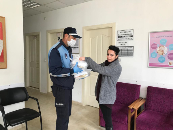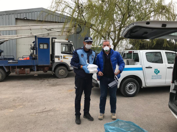SAĞLIK ÇALIŞANLARIMIZA DESTEĞİMİZ SÜRÜYOR   Bandırma Belediyesi sağlık çalışanlarına destek vermeyi sürdürüyor. Dün ilk olarak Bandırma Devlet Hastanesine verilen sağlık teçhizatlarının yanında 130 adet sandviç paketi ve 30 adette Özel Hastane'ye olmak üzere toplam 160 sandviç paketini dağıtan ekipler, bugün de sağlık emekçilerini unutmadı.   Belediye Başkanı Av. Tolga Tosun'unun talimatıyla özel olarak hazırlanan sandviç ikram paketleri Zabıta Müdürlüğü ekiplerince kentimizdeki Halk Sağlığı Merkezlerine ve Jandarma İlçe Komutanlığında dağıtıldı.