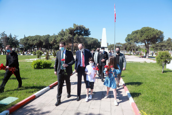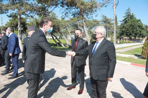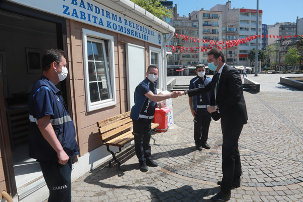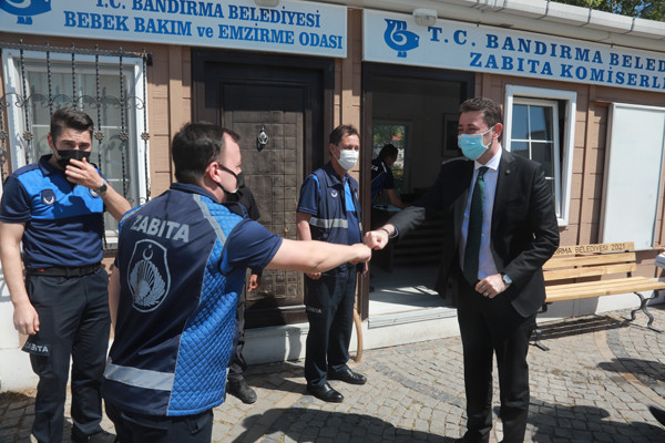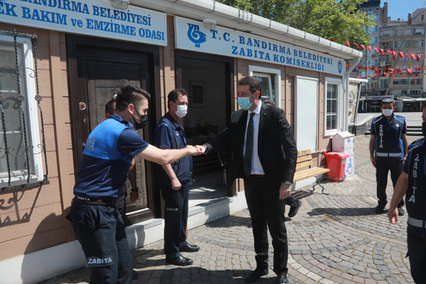 ŞEHİTLİKTE BAYRAMLAŞMA TÖRENİ DÜZENLENDİ   Kentimizde her bayram olduğu gibi bu bayramda da Şehitlikte bayramlaşma töreni düzenlendi. Törene; Bandırma Kaymakamı Günhan Yazar, 6. Ana Jet Üs Komutanı Hv. Plt. Tuğgeneral Oğuz Okuyucu, Belediye Başkanı Av. Tolga Tosun, kurum kuruluş müdürleri, siyasi parti başkanları, gaziler ve şehit yakınları katıldı.  İlçe Müftülük görevlilerinin dua okumasının ardından protokol üyelerinin şehit mezarlarına karanfil bırakması ile tören son buldu.   Şehitlikteki törenin ardından protokol üyeleri şehir girişinde bulunan trafik kontrol noktasındaki emniyet güçlerini ziyaret ederek bayramını kutladı.   Son olarak Belediye Başkanı Av. Tolga Tosun görev başındaki Zabıta memurlarını ziyaret ederek bayramlarını kutladı.