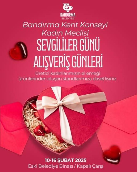 Sevgililer Günü’nü daha anlamlı kılmak için üretici kadınlarımızın el emeği ürünleriyle dolu Sevgililer Günü Alışveriş Günleri etkinliğimize davetlisiniz! 10-16 Şubat 2025 tarihleri arasında Eski Belediye Binası Kapalı Çarşı’da gerçekleşecek bu özel etkinlikte hem yerel üretime destek olabilir hem de sevdiklerinize unutulmaz hediyeler seçebilirsiniz. Sizleri bu keyifli alışveriş deneyimine bekliyoruz!