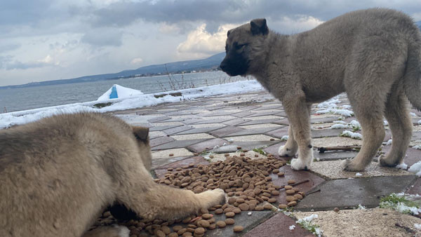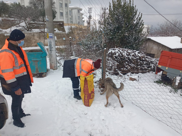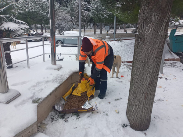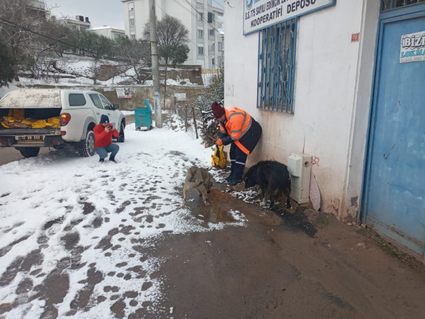 SOKAKLARDA YAŞAYAN DOSTLARIMIZI UNUTMADIK Soğuk hava koşullarından, kar yağışından etkilenen sokaklarda yaşayan dostlarımızı unutmadık. Hava koşulları dolayısıyla yiyecek bulamayan sokaklarda yaşayan dostlarımızın ihtiyaçlarını karşılamak için kentimizin öncelikle belirlenen noktalarına mama bıraktık. Şehir içinde ve dışındaki besleme noktalarına günlük periyotlarla bol miktarda bırakılıyor. Ekiplerimiz tarafından düzenli şekilde takipleri yapılan mama dağıtımının özellikle bugünlerde ne kadar önemli olduğunun bilinciyle çalışmalarımızı yürütüyoruz. Sokaklarda yaşayan dostlarımızın bu soğuk kış günlerini atlatabilmeleri için ekiplerimizin mama dağıtım çalışmaları kar yağışı süresince rutin olarak devam edecek.