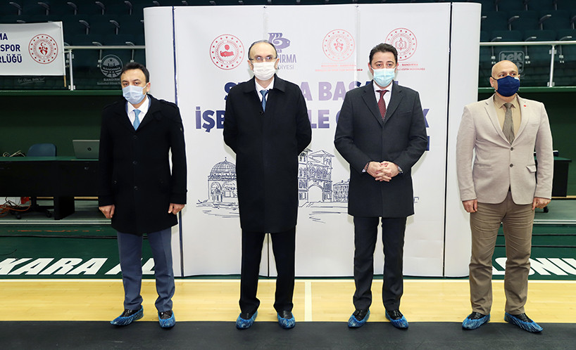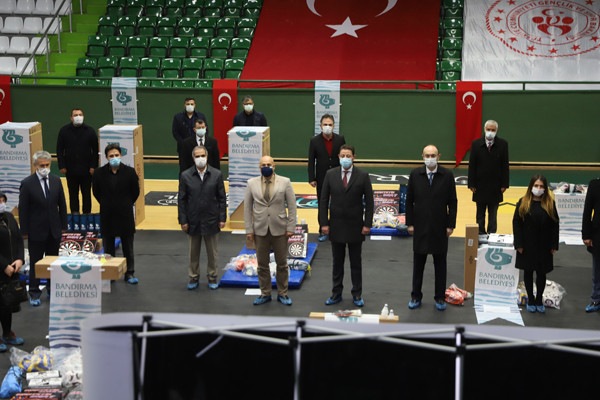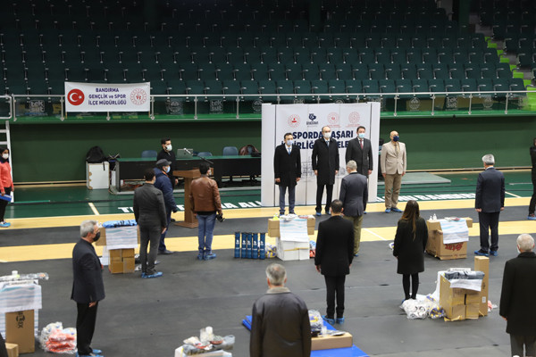 SPORDA BAŞARI İŞBİRLİĞİ İLE GELECEK PROJESİ İLE OKULLARA MALZEME DAĞITIMI YAPILDI “Sporda Yetenek 10’la Gelecek” projesi kapsamında düzenlenen teslim töreni bu yıl 4.sü “Sporda Başarı İşbirliği ile Gelecek” olarak değiştirilerek Bandırma Kara Ali Acar Spor Salonunda yapıldı. Ocak ayında Bandırma Kaymakamı Günhan Yazar, Belediye Başkanı Av. Tolga Tosun, İlçe Milli Eğitim Müdürü Mutlu Aslan ve İlçe Gençlik Spor Müdürü Hüseyin Elüstü'nün imzaladığı protokolle bugün 17 okula malzeme dağıtımı yapıldı. Teslim töreninde konuşan Belediye Başkanı Av. Tolga Tosun: “Dört senedir gelenek haline gelen bir uygulama bizde bu işin bir paydaşıyız. Organizasyonumuz bu yıl isim değişikliği ile okullarımızın ve öğrencilerimizin ihtiyaçlarını karşılamaya devam ediyor. Alınan spor malzemelerimizden 17 tane okulumuz yararlanacak ayrıca 5 tane okulumuza da müzik atölyesi oluşturulması için piyano aldık. Toplamda 4000 – 4500 civarında öğrencimiz bu malzemelerden faydalanacak. Her zaman Kaymakamlığımızın ve diğer müdürlüklerimizin yanındayız Bandırmamızı bir bütün olarak görüyor ve birlikte hareket ediyoruz. Öğrencilerimiz, çocuklarımız hepsi bizim evlatlarımız. İnşallah burada olduğumuz sürece bu işbirliğini devam ettireceğimize inanıyorum” dedi. Zor bir pandemi döneminden geçildiğini belirterek sözlerine başlayan Kaymakam Günhan Yazar: “Törenimizi pandemi şartlarından dolayı az bir katılımla gerçekleştiriyoruz. Önemli bir proje için buradayız ilçemizde spor yapamayan genç, çocuk ve öğrenci kalmaması için bu projeyi gerçekleştiriyoruz. Belediyemizin büyük desteği ile gerçekleştirdiğimiz projede ben şahsım adına Başkanımıza ve emeği geçenlere teşekkür ediyorum” dedi.