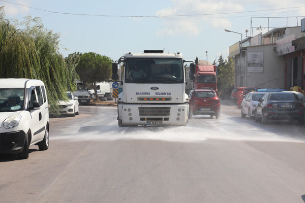 TEMİZLİĞE HIZ KESMEDEN DEVAM Bandırma Belediyesi, temizlik çalışmalarına hız kesmeden devam ediyor. Bandırma Belediyesi temizlik ekipleri tarafından gerçekleştirilen temizlik çalışmaları, her zaman olduğu gibi değerli Bandırma halkı için özenli ve düzenli bir şekilde hizmete devam ediyor. Bandırma Küçük Sanayi Sitesi’nde yapılan ilaçlı ve tazyikli suyla yolların yıkanması, hasarlı çöp konteynerlerinin değişimi gibi gerçekleştirdiğimiz her çalışma, halkımızın sağlığı için devam etmekte.