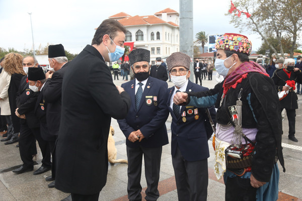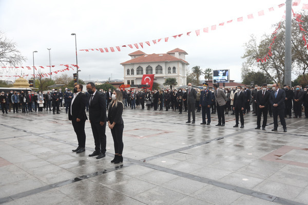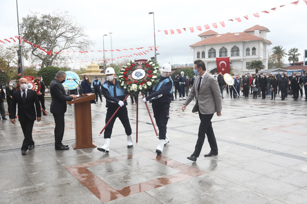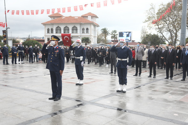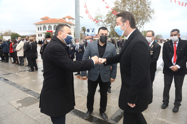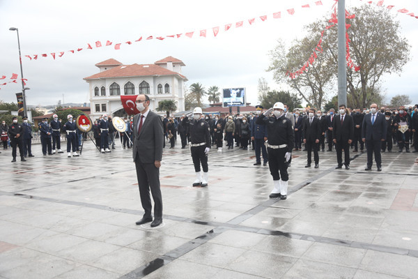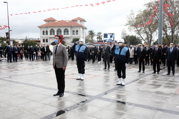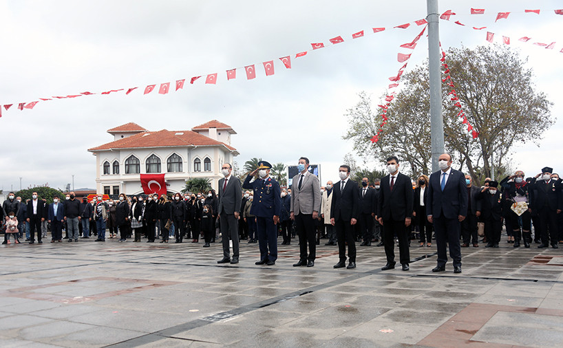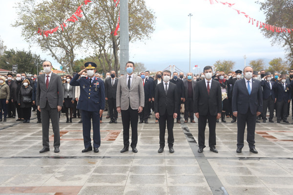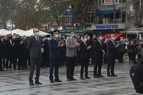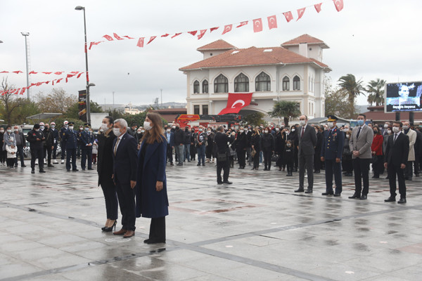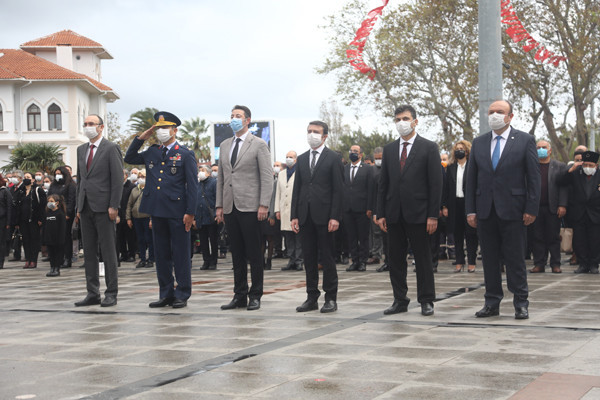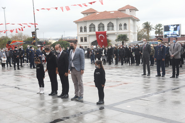 ULU ÖNDER MUSTAFA KEMAL ATATÜRK CUMHURİYET MEYDANINDA DÜZENLENEN TÖRENLE ANILDI   Atatürk anıtına çelenklerin sunulmasıyla başlayan tören programı, saatlerin 09.05’i göstermesiyle tüm Türkiye ile birlikte Atamıza saygıya duruşuna geçildi.   Saygı duruşu ve İstiklal Marşının okunmasının ardından Onyedi Eylül Üniversitesi Öğretim Üyesi Dr. Resul Yavuz günün anlam ve önemini belirten konuşmayı tamamlaması ile tören sona erdi.   Törene Bandırma Kaymakamı Günhan Yazar, Garnizon Komutanı Hv. Plt. Tuğgeneral Oğuz Okuyucu, Belediye Başkanı Av. Tolga Tosun, Başsavcı Cüneyt Demirdaş, Adalet Komisyon Başkanı Mehmet Tarakçı, Onyedi Eylül Üniversitesi Rektörü Prof. Dr. Süleyman Özdemir, siyasi parti temsilcileri, sivil toplum örgütleri, dernekler ve daire müdürleri katıldı.