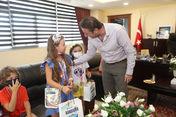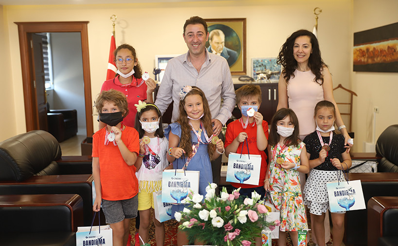 UMUT VAAT EDEN GENÇ SATRANÇ SPORCULARINDAN BAŞKANA ZİYARET   Bandırma’da özel ders veren satranç antrenörü Cemile Yıldırım, Balıkesir İl Satranç Turnuvasında, bireysel 7-13 yaş kategorilerinde; 4 il birinciliği, 3 il ikinciliği ve 1 il üçüncülüğü elde eden genç sporcularla Belediye Başkanı Av. Tolga Tosun’u ziyaret etti.   Başkan sporcularla tek tek sohbet edip, yaklaşan Konya ve Türkiye turnuvalarında başarılar diledi. Ziyaret sonunda Belediye Başkanı ziyaretçilerine hediyeler takdim etti.