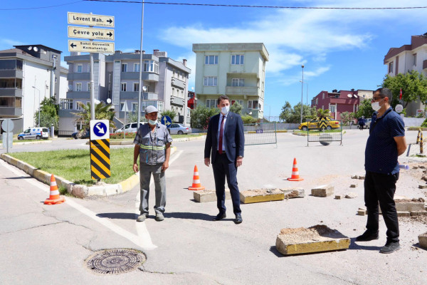 YOL YAPIM VE TAMİRATIMIZ DEVAM EDİYOR   Belediye Başkanı Av. Tolga Tosun kentimizin çeşitli noktalarında Belediye ekiplerimizin devam eden yol yapım ve onarım çalışmalarını yerinde inceledi.   100. YIL - SANAYİ BAĞLANTI YOLU   Çalışmalar ile ilgili bilgi veren Belediye Başkanı Av. Tolga Tosun: “100 Yıl Mahallemizdeki 1717 nolu sokağı Bandırma Küçük Sanayi Kavşağıyla bağlantısını yapıyoruz. Böylece bu bölgeden sanayiye ve farklı yerlerden bu bölgeye gelecek vatandaşlarımız bu yolu kullanarak Sanayi Kavşağı Liman Avm arasındaki trafik yoğunluğunu azaltacaklar. Ayrıca Eti Maden önünde açmaya başladığımız yan yol ile bu bölgenin trafiğini hafifletmiş olacağız.   SERVET ÇIRPAN CADDESİNİ YENİLİYORUZ   Yoğun bir şekilde kullanılan ancak yol bozukluğundan dolayı vatandaşlarımıza sıkıntı çıkaran Servet Çırpan Caddemizi yeniliyoruz. Tekrar kazılmaması için diğer kurumlarımızda altyapı çalışmalarına devam ediyor. Altyapı çalışmalarının tamamlanmasıyla birlikte ekiplerimiz mümkün olan en hızlı şekilde üstyapıyı tamamlayarak vatandaşlarımızın kullanımına açacağız.   LEVENT MAHALLEMİZDE TAMİRATLARIMIZA DEVAM EDİYORUZ   Levent Mahallemizde ekiplerimiz bozuk yol ve kaldırımların tadilatını sürdürüyor. İnşaat ve altyapı kazıları nedeniyle kentimizin birçok noktasında bozuk yollarımızın tamiratını personelimiz ölçüsünde gidermek için mücadele ediyoruz” dedi.