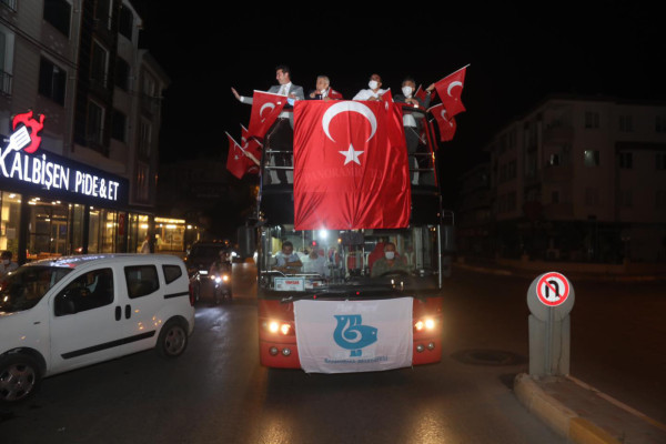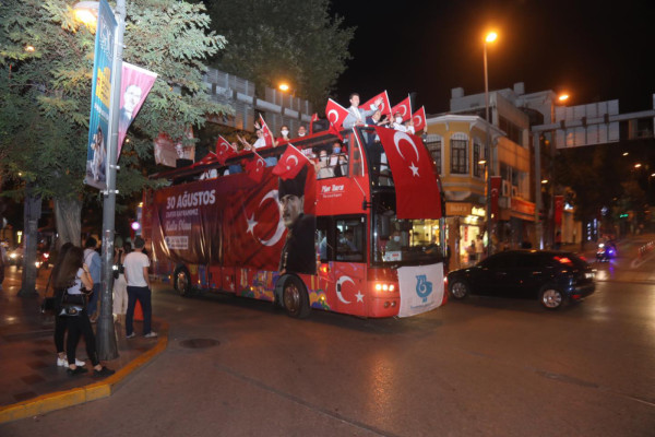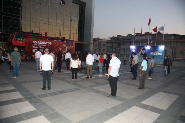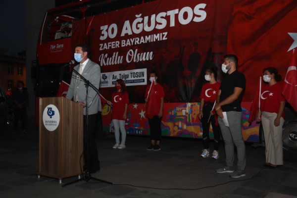ZAFER BAYRAMI COSKUSU LAZER VE IŞIK GÖSTERİLERİYLE SON BULDU 30 Ağustos Zafer Bayramı coşkusuna Cumhuriyet Meydanındaki Lazer ve Işık gösterileriyle devam edildi. Aksam saatlerinde başlayan zafer turu Bandırma cadde ve sokaklarında halkımızla buluşurken turun ardından Cumhuriyet Meydanında düzenlenen lazer ve ışık gösterileriyle keyifli bir bayram coşkusu yaşandı.