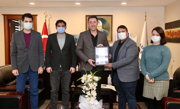 TEMA Vakfı Bandırma Şube Başkanı Burak Uğur ve Yönetim Kurulu üyeleri Yener Ok, Zafer Ekşi ve Şimal Görgün Belediye Başkanı Av. Tolga Tosun’u makamında ziyaret ederek vakfa verdiği