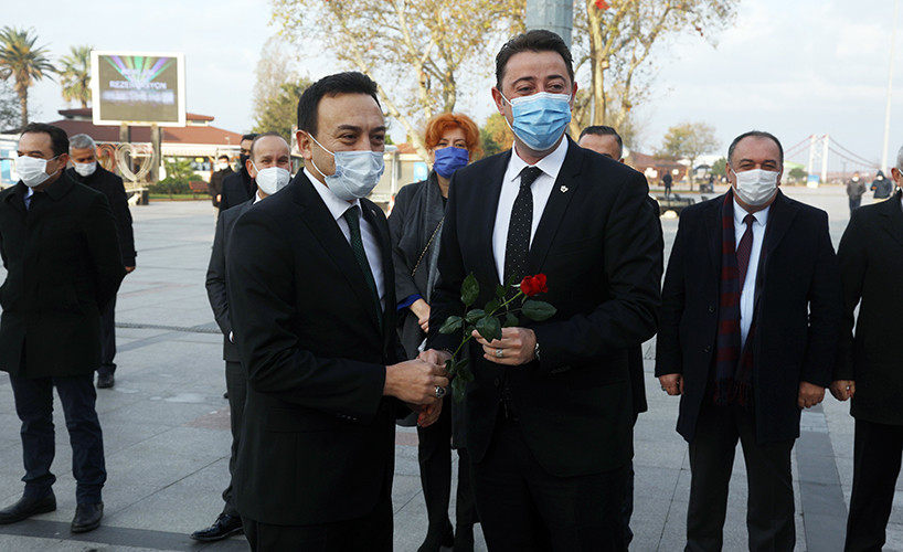 Atatürk anıtına çelenklerin sunulmasıyla başlayan tören programı, saatlerin 09.05’i göstermesiyle tüm Türkiye ile birlikte Atamıza saygıya duruşuna geçildi.