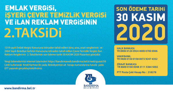 1319 sayılı Emlak Vergisi Kanununa istinaden tahsil edilen bina, arsa, arazi vergilerinin ve 2464 Sayılı Belediye Gelirleri Kanununa istinaden tahsil edilen