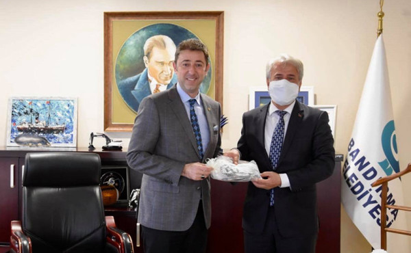 Antalya Valisi olarak atanan Balıkesir Valisi Ersin Yazıcı vedalaşmak için geldiği Bandırmada protokol üyeleri ile Kaymakamlık makamında bir araya geldi.