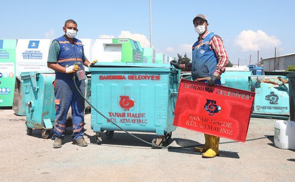 Bandırma Belediyesi ekipleri, salgın nedeniyle yerine getirdiği dezenfekte çalışmalarının yanı sıra kent genelinde temizlik, konteyner bakım ve onarım çalışmalarını da sürdürüyor.