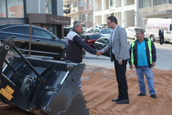 Belediye Başkanı Av. Tolga Tosun, Fen İşleri Müdürü Ufuk Tokbay ile birlikte Belediye ekiplerin Sanayi Sitesinde yapılan kot düzenleme çalışmalarını yerinde inceledi.