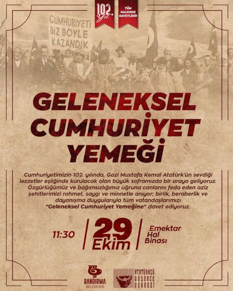 GELENEKSEL CUMHURİYET YEMEĞİNDE GELİN BİRLİK OLALIM!